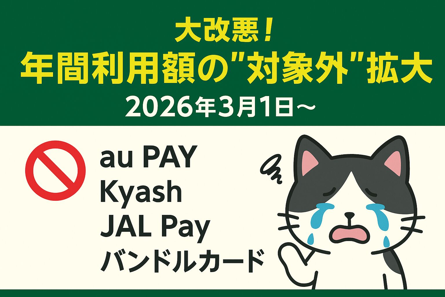 本記事では、「何が変わるのか」「どのサービスが対象外になるのか」「どのカードに影響するのか」を分かりやすく解説します。