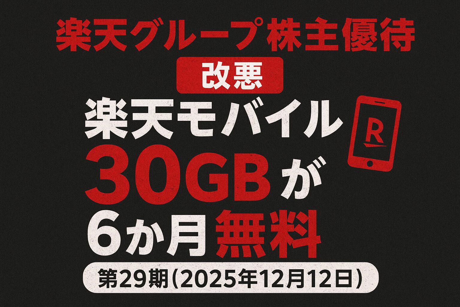- 【楽天モバイル1年無料の裏技!】楽天グループ株主優待で30GB使える音声+データプランの始め方