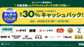 キャンペーン期間中に事前登録のうえ、Apple PayやGoogle Payに登録したVisaカードでタッチ決済を行うと、利用金額の15%がキャッシュバック(上限1,000円)されます。